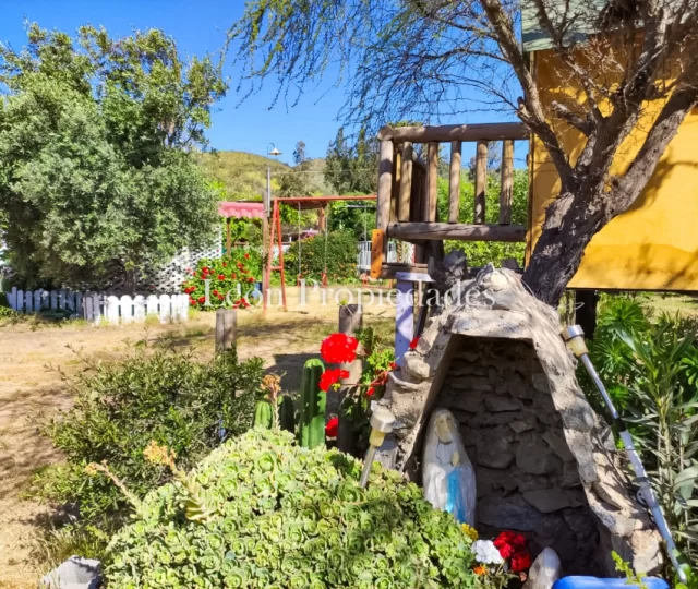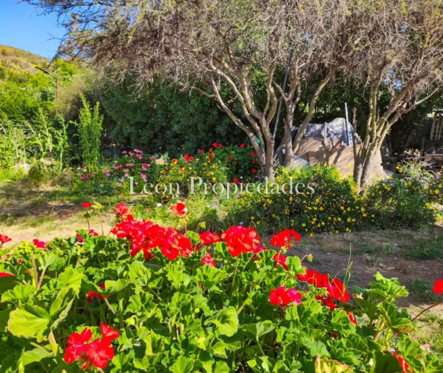 esta propiedad cuenta con hermosas jardines, diferentes plantas, rosas, y arboles frutales como peras, manzanos, ciruelo y granadas plantados por sus mismos dueños, lo que le da un aspecto muy natural y fresco, su terreno es mixto, tiene un parte plana y en la parte de atrás tiene una loma con prado verde. Las características de esta propiedad son: