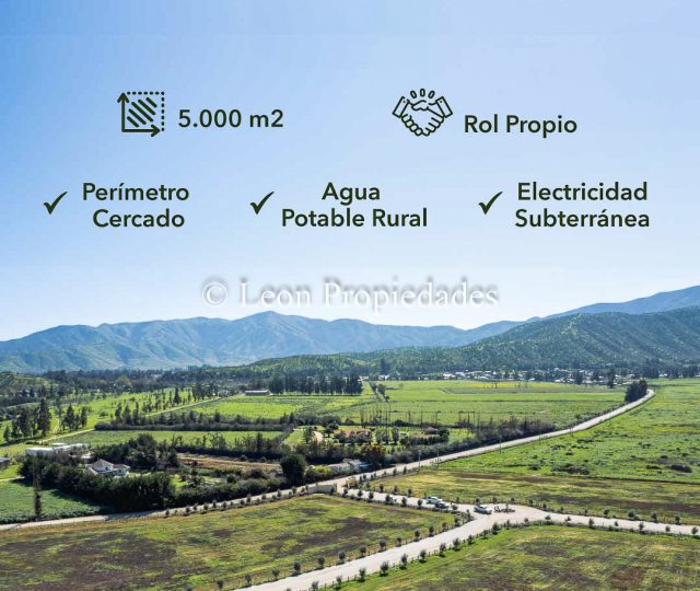 Se vende exclusiva parcela plana de 5000 m2, con rol propio, emplazadas en un entorno de ensueño con hermosos prados verdes y múltiples olivos ,otras especies donde podrás construir la casa que siempre soñaste, a tu gusto y con todas las comodidades para refugiarte con los tuyos. Este es un lugar especial para disfrutar junto a tu familia, con agua potable (APR), electricidad (canalización subterránea), acceso único y con portón automático, lo que permitirá alejarte de la ciudad estando cerca, tener árboles frutales y tal vez hacer tu propio huerto .