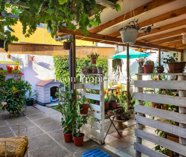 Hermosa casa de 1 piso, esta ubicada en condominio de solo 13 casas, cerrado, buen y tranquilo ambiente, no cuenta con acceso de auto, pero se deja estacionado en plaza (sector común), cuenta con abundante plantas y arboles, en su patio posterior tiene una hermosas terraza con patio.